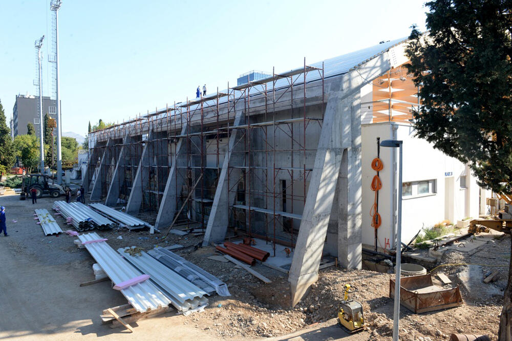 "Izvode se i radovi na zidanju pregradnih zidova ispod glavne noseće betonske grede, okrenute prema hotelu Podgorica, kako bi se uradili prostori u kojima će biti smještene termotehničke instalacije i toplotne pumpe, kao i magacinski prostor za sportsku opremu na bazenu. Takođe, izvode se radovi na postavljaju i povezivanju termotehničkih instalacija u podtribinskom dijelu vaterpolo bazena na toplotne pumpe, kao i povezivanje bojlera na vaterpolo bazenu. U toku su i radovi na postavljanju i montaži reflektora za sportsku rasvjetu na bazenu", ističe se u saopštenju.