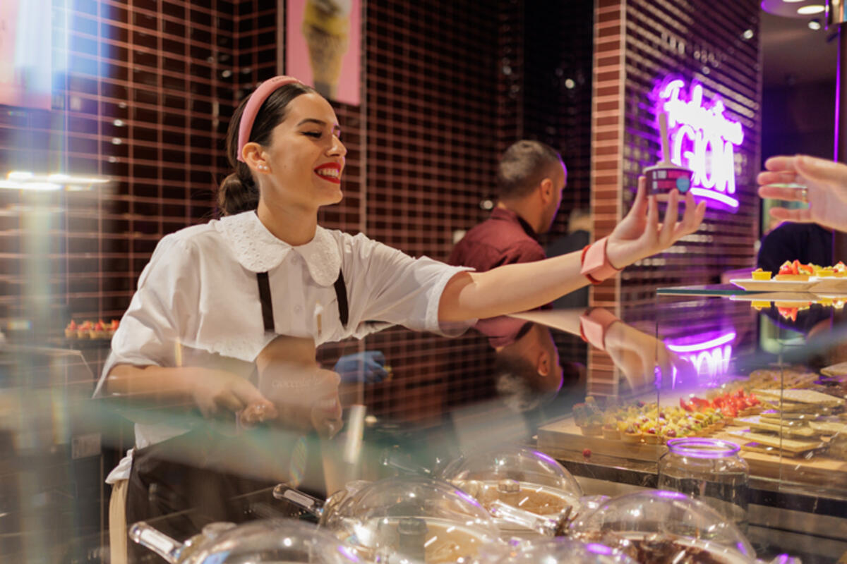 Otvorene laboratorije, čokoladne fontane, vidljive peći, punjenje korneta sladoleda otopljenom čokoladom, postali su prepoznatljiv potpis usluge ovog brenda.
