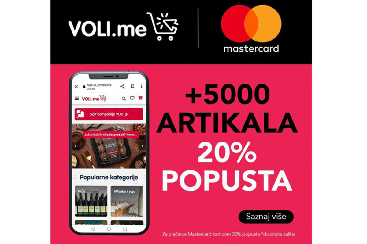 Ostvarite 20% popusta plaćanjem Mastercard karticom prilikom trgovine na www.voli.me.
