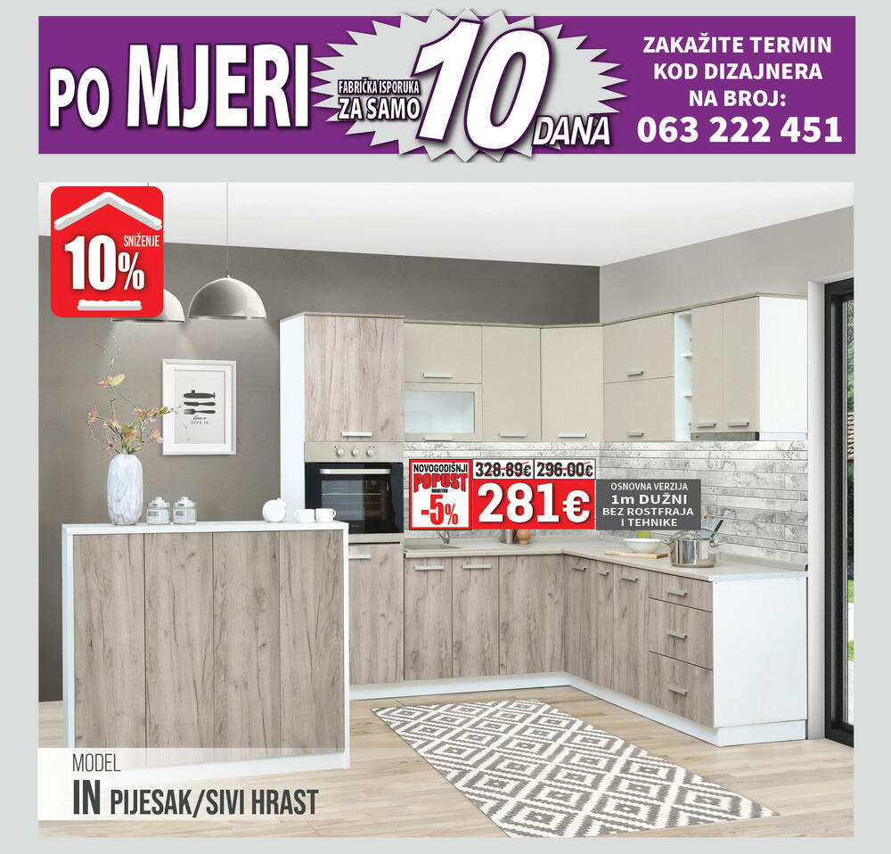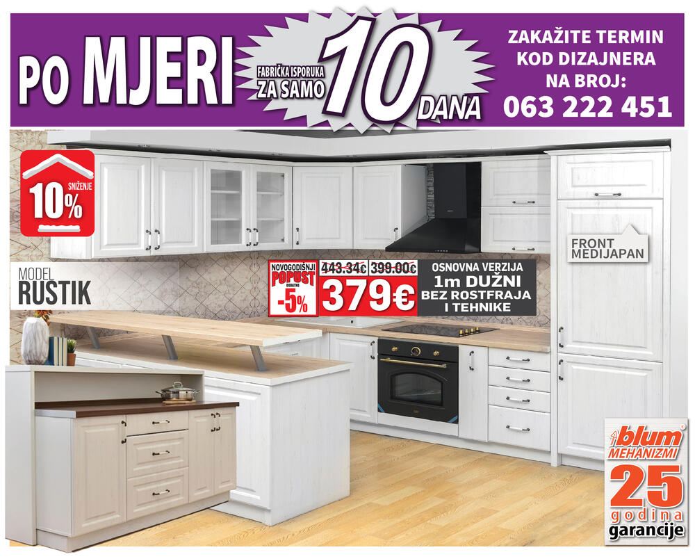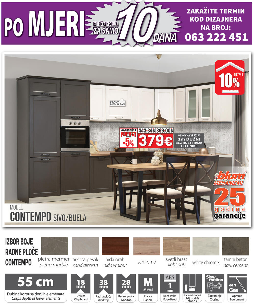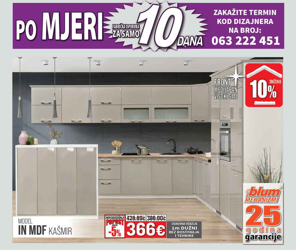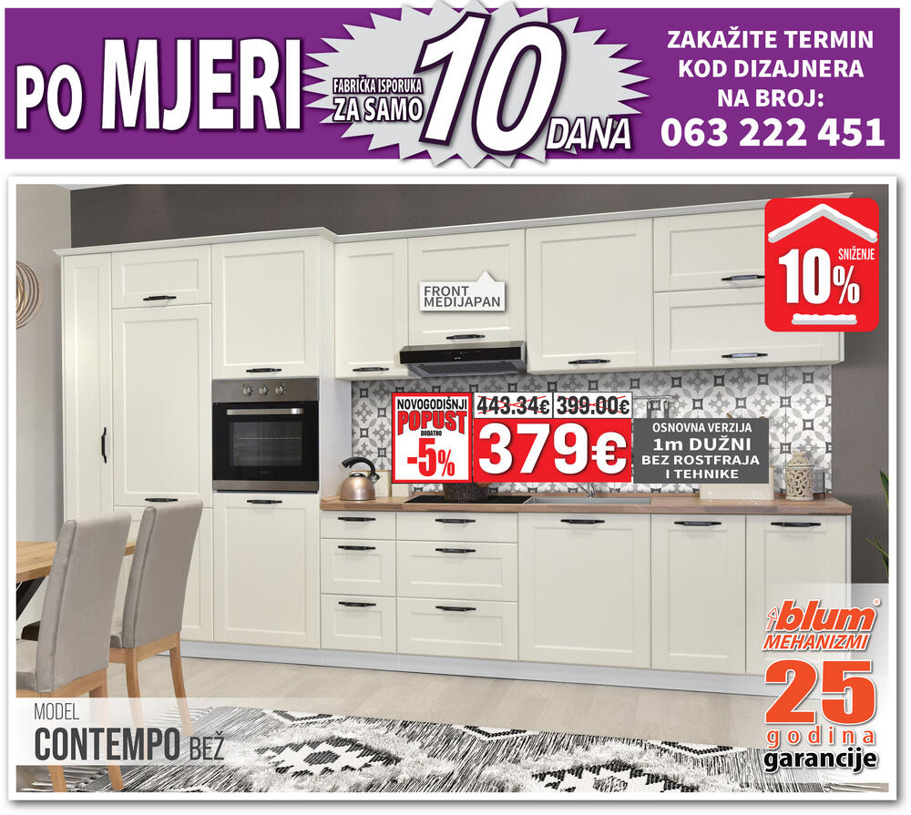 Kompletnu ponudu kuhinja i generalni novogodišnji katalog možete pogledati na www.namos.co.me i www.matis.rs a termin kod dizajnera možete zakazati svakim danom od 08h – 20h na broj 063 222 451.