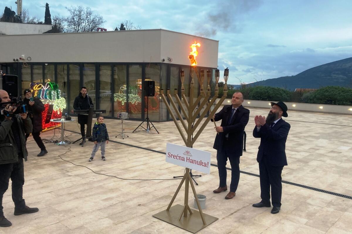Predsjednik Opštine Herceg Novi Stevan Katić i Vrhovni rabin Vjerske zajednice Jevreja u Crnoj Gori Ari Edelkopf juče su zajedno osvijetlili Menoru na platou ispred zgrade lokalne samouprave, u sklopu obilježavanja Hanuke - jevrejskog praznika slobode i svjetlosti.