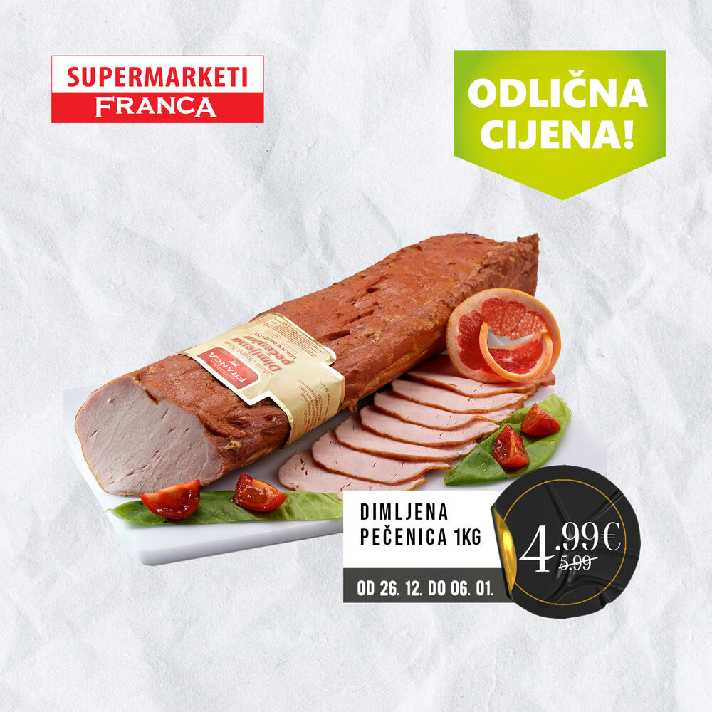 Posjetite obližnji supermarket Franca i uživajte u našoj prazničnoj ponudi od 26.12 do 15.01.2023.godine.
