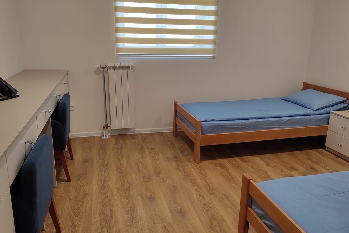 Dom ima 208 smještajnih jedinica, 104 za raseljena i interno raseljena lica, a 104 za crnogorske građane, a čini ga pet objekata - četiri paviljona za smještaj i upravna zgrada.