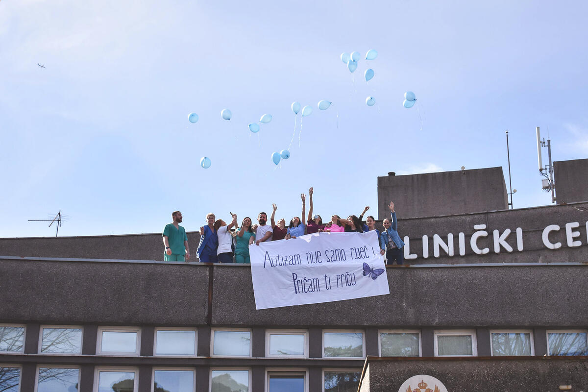 "KCCG je i ove godine podržao aktivnosti Fondacije. S tim u vezi, jedna od članica Fondacije, koja je ujedno i član našeg kolektiva, zaposlena u Centralnoj jedinci intenzivnog liječenja Klinike za anesteziju, reanimaciju i terapiju bola, medicinska sestra Sabina Decević, sa kolegama je na krovu glavne zgrade KCCG raširila transparent na kojem je pisalo 'Autizam nije samo riječ – Pričam ti priču'. Uz transparent su u vazduh pustili plave balone, jer je plava boja jedan od simbola autizma", kažu iz KCCG.