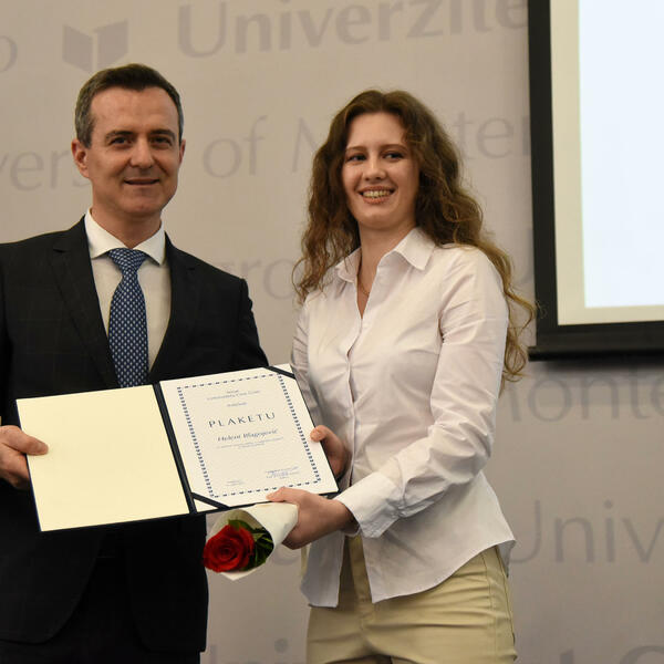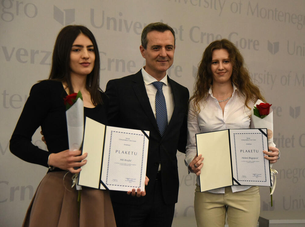 Rektor Vladimir Božović je uručio i plakete najboljim studentima fakulteta UCG – Heleni Blagojević, Tijani Drobnjak, Miji Kružić, Vukašinu Stojanoviću i Luki Velaševiću.