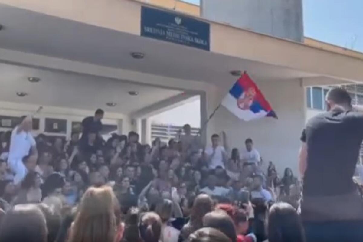 Na snimku koji je objavljen na Fejsbuk stranici portala Normalizuj.me, učenici su se okupili ulazu u školu, gdje su pjevali pjesmu "Vidovdan".