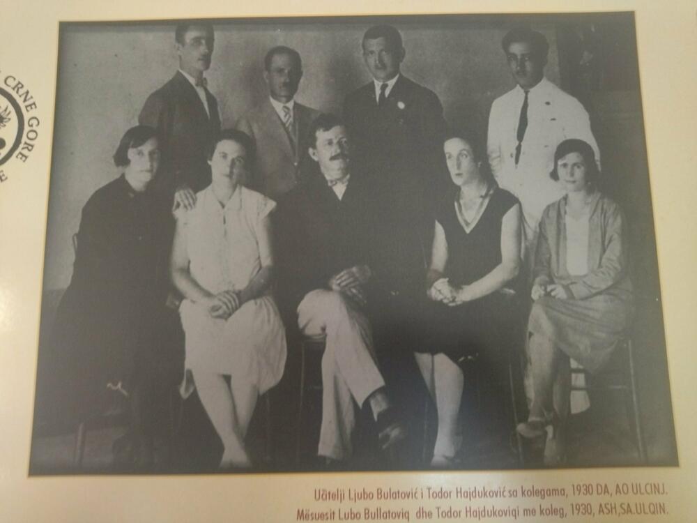 “Za vrijeme Balkanskih ratova, 1912-1913. godine, škole u Ulcinju nijesu radile. Za vrijeme Prvog svjetskog rata od 1916. do 1918. školu su pohađala gradska djeca, a nastava je izvođena na albanskom i hrvatskom jeziku. Nastavnice su bile sestre ‘Malog krsta’. Obavezno je bilo učenje njemačkog jezika”, piše na jednom od panoa sa izložbe.