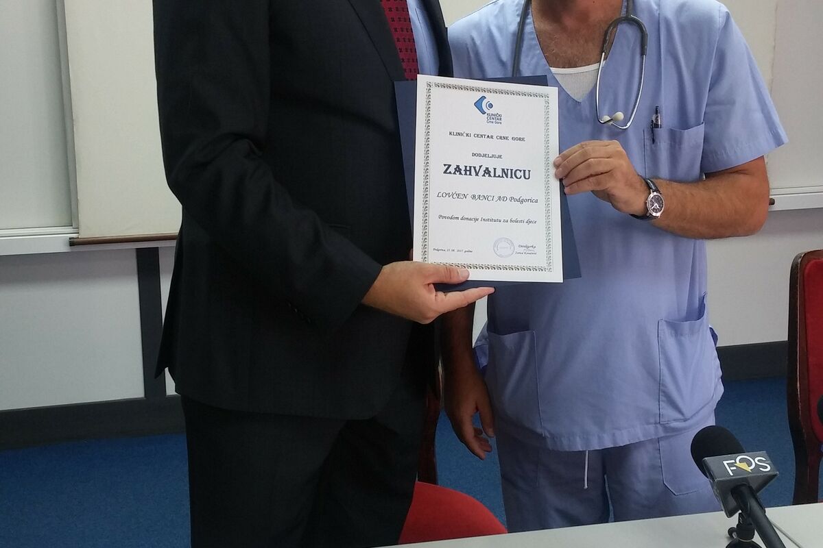 "Lovćen banka AD Podgorica, danas obilježava svoj jubilej, tri godine od osnivanja i tim povodom, odlučili smo da doniramo bolnički krevet najviše klase, sa četiri motora, za potrebe Kliničkog centra Crne Gore. Donacijom je Lovćen banka željela da da svoj skromni doprinos i na taj način pomogne funkcionisanje Odjeljenja intenzivne terapije Instituta za bolesti djece. Vjerujemo da će najsavremeniji bolnički krevet, pomoći pri efikasnijem zbrinjavanju malenih pacijenata i doprinijeti boljim uslovima u ovoj važnoj ustanovi”, rekao je šef odjeljenja za marketing Lovćen banke Dejan Bojanić.