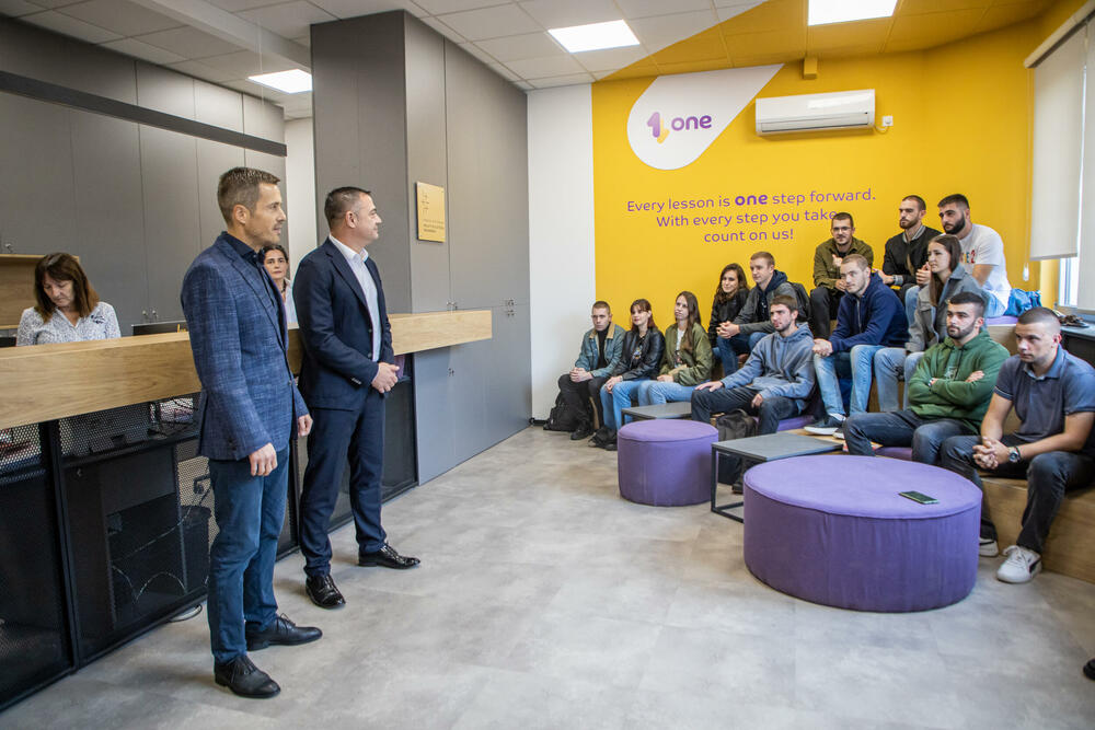 A prostor studentske službe, kako je istakla Žarić, inspirisan je baš komapijom One, njenom estetikom i njenim vrijednostima. To su, kako su ispričali predstavnici kompanije, posvećenost radu, direktnost i otvorenost, okrenutost modernom vremenu i tehnolološkom napretku.