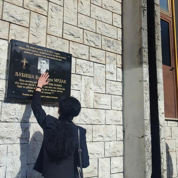 Spomen ploču, čije postavljanje je inicirala porodica Vuković, kumovi ubijenog Mrdaka, i predsjednik Opštine Nikšić, Marko Kovačević, otkrili su Ljubišin sin Andrija Mrdak i Vojin Striković u ime Opštine.