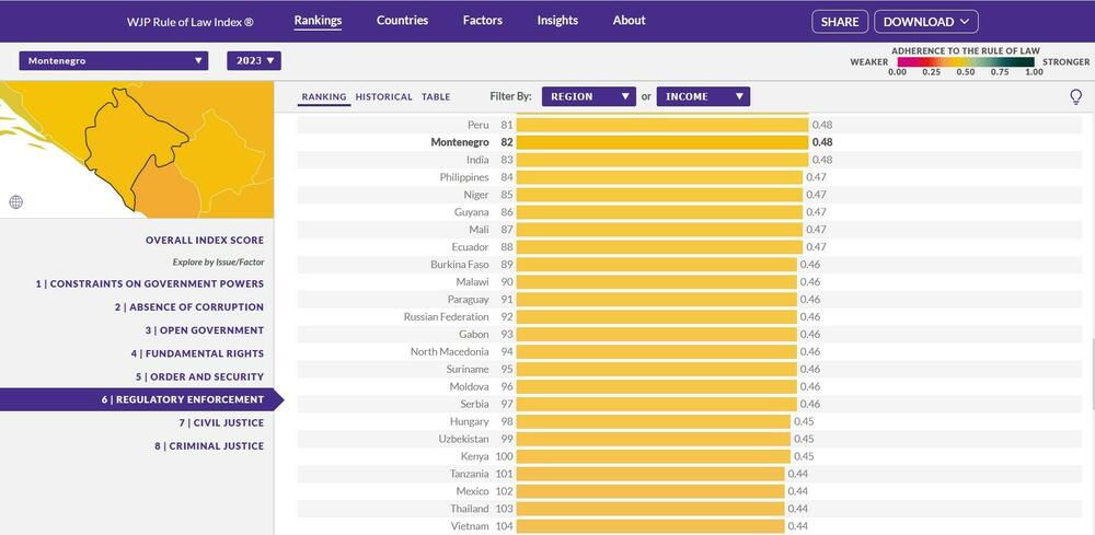 To što se Crna Gora našla prvi put, i to na 57. mjestu od 142 države svijeta, na Indeksu vladavine prava organizacije “Svjetski projekat pravde” (World justice project - WJP), ne znači i da je ta ocjena ogledalo svih mjerenih parametara.