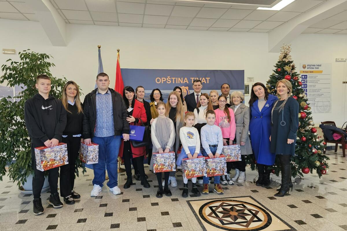 Djeca Tivta - učenici osnovnih i srednjih škola, pa i oni najmlađi predškolskog uzrasta, posjetili su Opštinu Tivat i predsjednika Opštine Željka Komnenovića i prenijeli mu najljepše želje povodom predstojećih praznika.