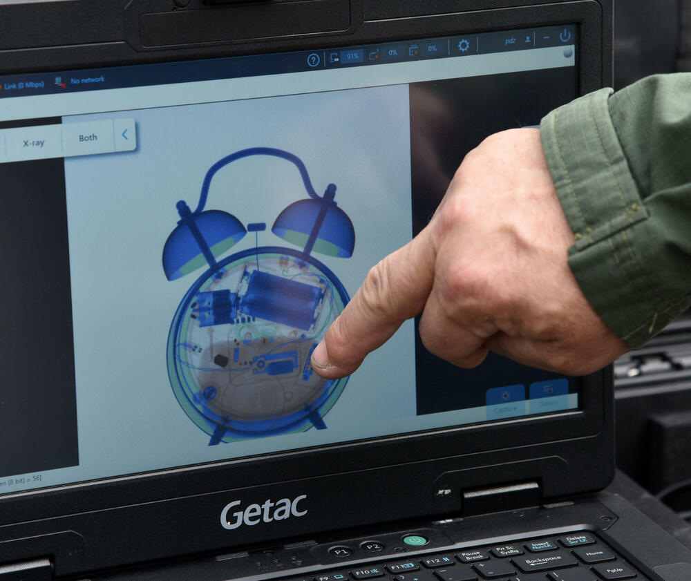 “Kad otkrijemo gdje se nalazi neka eksplozivna naprava, ili neki sumnjiivi predmet, dalji postupak zavisi od rendgenskog uređaja preko kojeg snimamo unutrašnjost predmeta. Kada snimimo unutrašnjost, tek na osnovu dobijenog snimka odličujemo šta dalje da radimo”, priča Konatar, dok njegove kolege pokazuju na primjeru kako unutrašnjost “sumnjivog” ranca izgleda na ekranu.