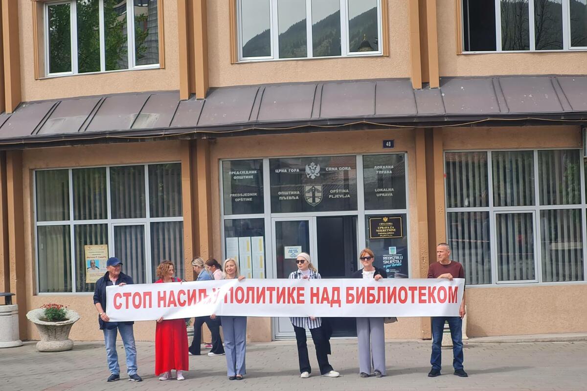 Dio zaposlenih u Biblioteci Stevan Samardžić u Pljevljima organizovao je danas ponovo ispred zgrade opštine jednosatni štrajk upozorenja zbog kako tvrde nezakonitih radnji rukovodstva te javne ustanove.