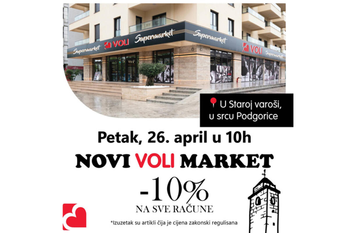 U Staroj varoši, u srcu Podgorice novi Voli market otvara svoja vrata 26. aprila u 10h