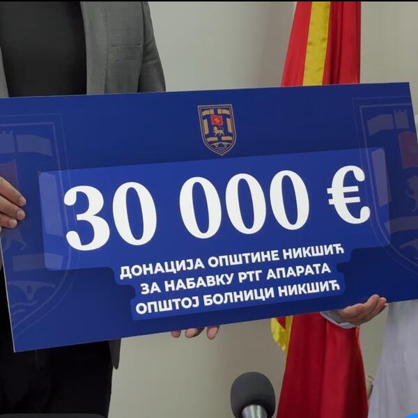 Predsjednik Opštine Nikšić, Marko Kovačević, uručio je vrijednu donaciju nikšićkoj Opštoj bolnici u iznosu od 30 hiljada eura za nabavku digitalnog mobilnog rendgen aparata.