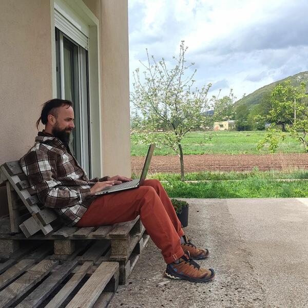 “Živjeli smo u Tivtu gdje je bilo OK, u Baru je bilo dobro, a u Nikšiću nije bilo tako dobro jer smo živjeli u stanu. U Grahovu smo sedam mjeseci i ovdje je najljepše. Svima bih koji, poput nas, imaju poslove vezane za Internet rekao da dođu ovdje, budu u prirodi i uživaju”, kaže Denis dok sjedi u “kancelariji” i radi.