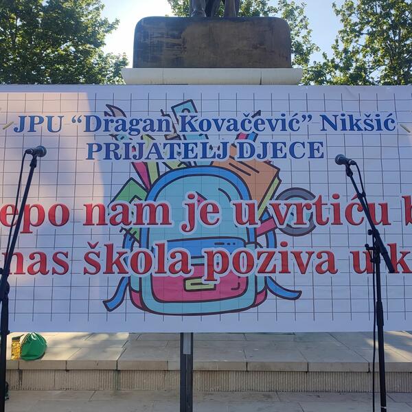 Oko 600 predškolaca „obojilo“ je nikšićki Trg crvenom, žutom, zelenom i bijelom bojom, ali prije svega mladošću, ljepotom, igrom i pjesmo. Pod sloganom „Lijepo nam je u vrtiću bilo, sad nas škola poziva u krilo“, JPU „Dragan Kovačević“ je na nikšićkom Trgu slobode obilježila 74. rođendan, ali i predškolcima poželja sreću za početak škole.