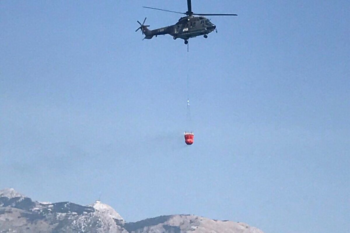 Helikopter opremljen podvjesnim protivpožarnim vedrom kapaciteta 2.000 litara, uzimao je morsku vodu kod Ostrva cvijeća i odmah je potom izručivao na obližnje požarište, navođen od strane komandira Službe zaštite i spašavanja Opštine Tivat Zorana Barbića.