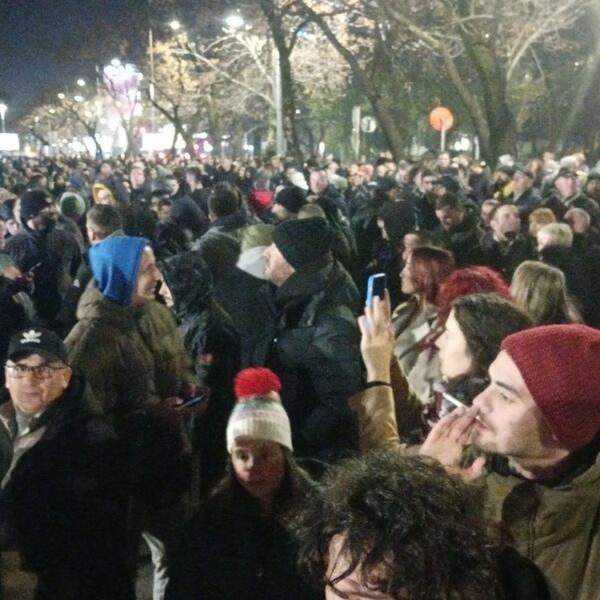 Napomena: Videi autora Dušana Cicmila snimljeni su u periodu od 19 do 19:15 časova, kad su građani još pristizali na protest.