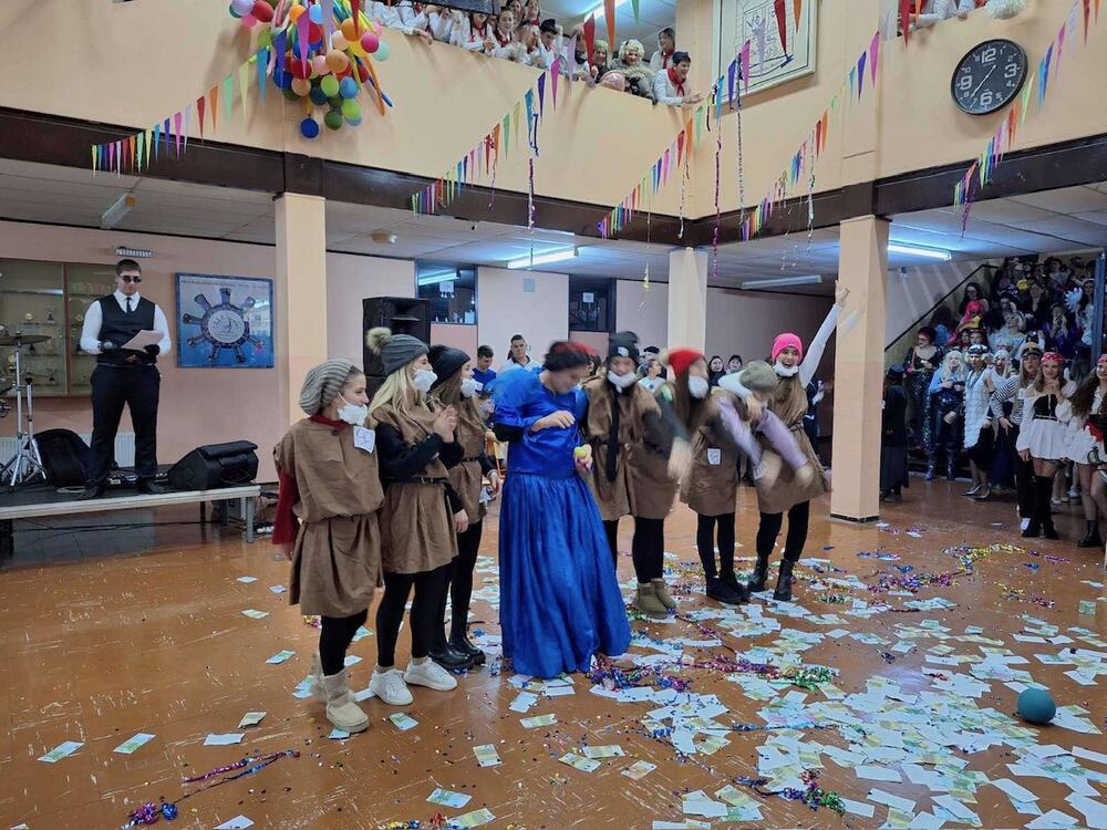 “Uoči Valentinova i Svetog Trifuna, juče se prijepodne malo učilo, malo su se vježbale koreografije, a malo se škola uređivala za večernji štimung. Okupljanje je počelo oko pet popodne, učionice su zažagorile mladošću, šminkalo se, presvlačilo, pjevušilo i finalno dogovaralo. Oko sedam sati i par minuta, mladi konferansije Vojin Begović počeo je sa predstavljanjem maski. I kao svake godine, ne računajući one koje je pojela korona, defilovali su školskim holom mladi pirati, princeze, biznismeni, fudbaleri i navijačice, pioniri… generacije i kulture ostale negdje iza nas ali i uz nas. Neke šarene ptičice su se spremale za let, dalmatinci bježali od Kruele, pokretale se barke, otvarali kovčezi sa blagom. Brzo su se smjenjivale dvadesete i sedamdesete, recitovale pionirske zakletve”, rečeno je Vijestima u Gimnaziji