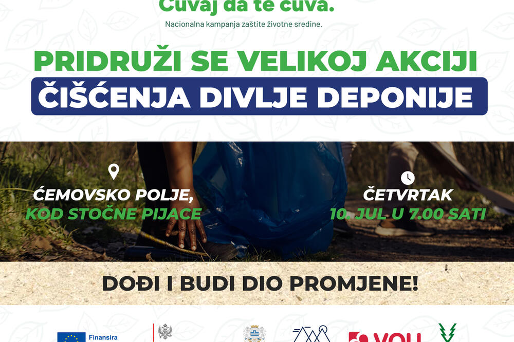 Prva akcija čišćenja, u okviru nacionalne kampanje zaštite životne sredine „Čuvaj da te čuva“, biće organizovana sjutra na Ćemovskom polju u Podgorici, kod Stočne pijace.