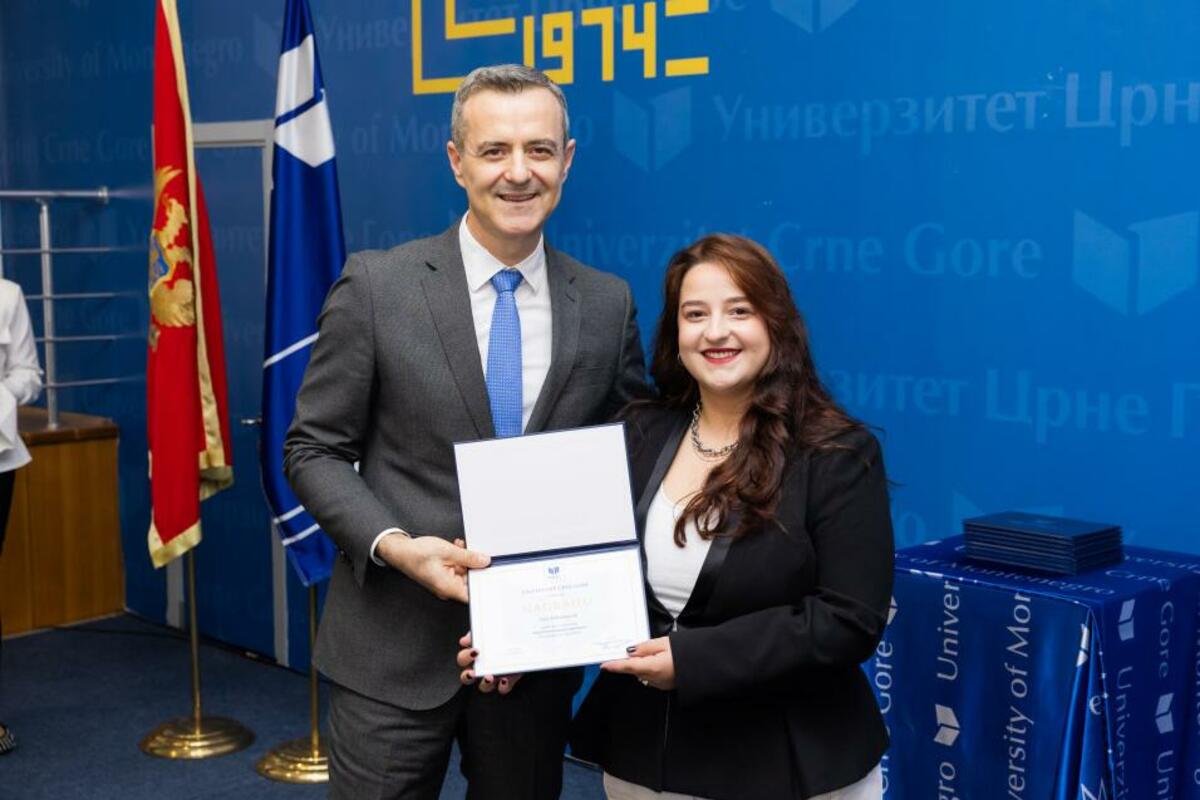 Studentkinja studijskog programa Film i mediji proglašena je najboljom studentkinjom FDU-a sa prosjekom 9,97, a Nagradu Univerziteta uručio joj je rektor Univerziteta Crne Gore, Vladimir Božović.