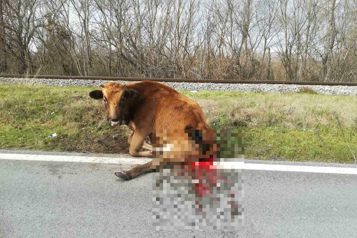 Ranjena krava od sinoć leži uz magistralu u Zeti, u blizini željezničke stanice "Zeta", nakon što ju je, pretpostavlja se, udarilo motorno vozilo.