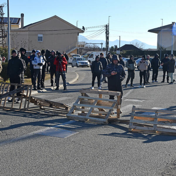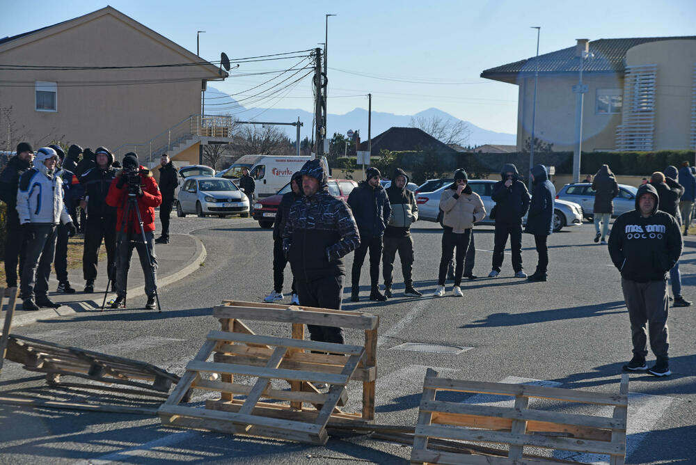 Blokada kružnog toka ka aerodromu je počela oko 10 časova, a građani su se okupili u znak protesta zbog jučerasnje intervencije policije tokom raščišćavanja parcele u Botunu radi gradnje postrojenja za prečišćavanje otpadnih voda.