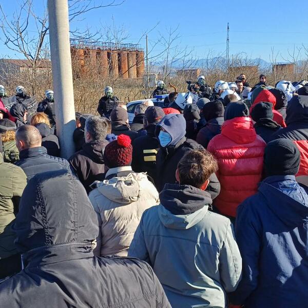 Građani su se vratili ka kružnom toku nakon što nisu mogli prići gradilištu, gdje su juče otpočeli radovi na gradnji postrojenja.