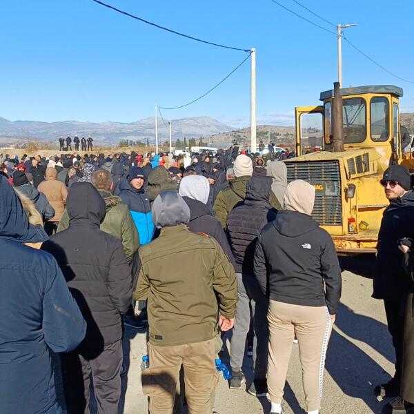 Blokada kružnog toka ka aerodromu je počela oko 10 časova, a građani su se okupili u znak protesta zbog jučerasnje intervencije policije tokom raščišćavanja parcele u Botunu radi gradnje postrojenja za prečišćavanje otpadnih voda.
