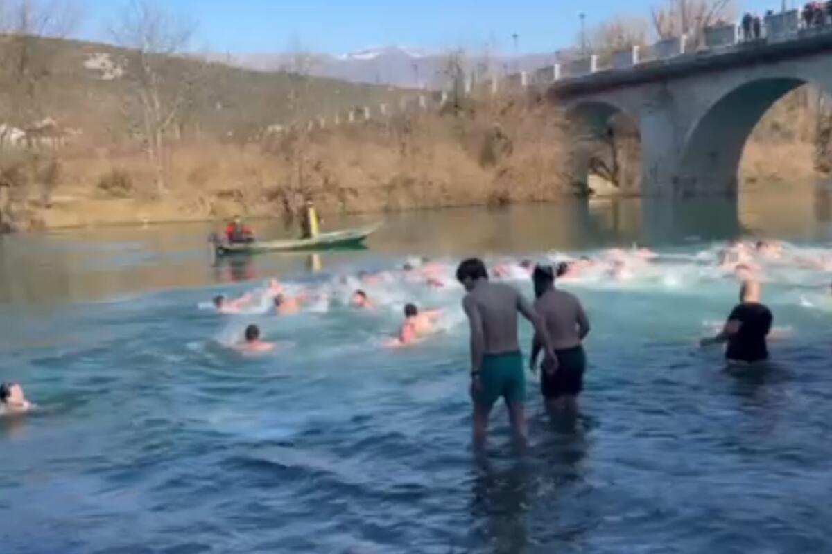 U plivanju je učestvovalo oko 50 vjernika, među kojima je bilo i nekoliko djevojčica i djevojaka.