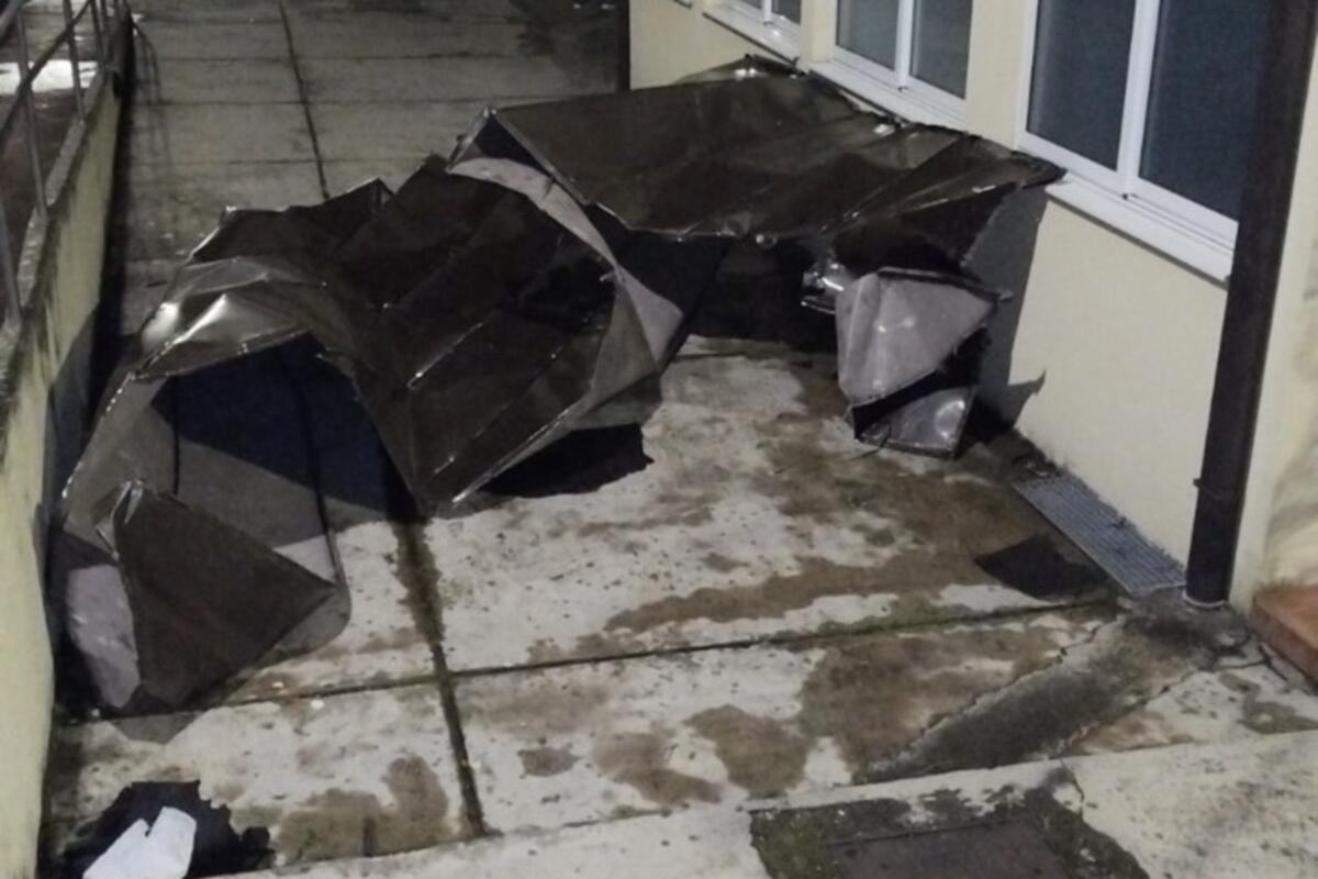 Vjetar je kako nezvanično saznajemo, odnio veći dio limenog prekrivača sa krova škole, a kiša je onda prodrla u zgradu i poplavila više prostorija, najviše na dijelu gdje se nalazi fiskulturna sala.