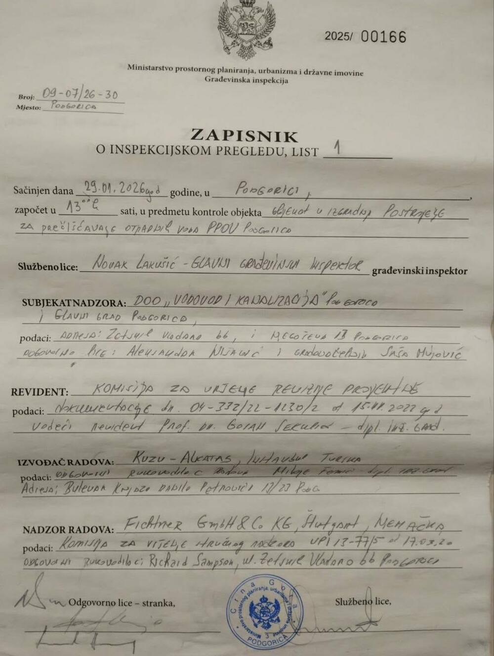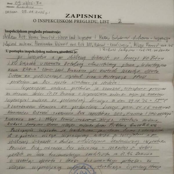 Inspektor Novak Lakušić navodno je u nalazu kao nedostatak konstatovao da mu nije dat dokaz o ispunjenosti uslova za obavljanje djelatnosti stručnog nadzora.