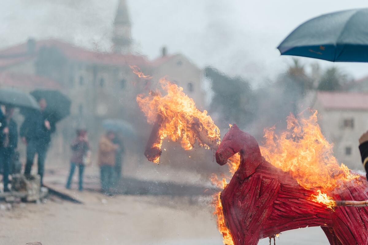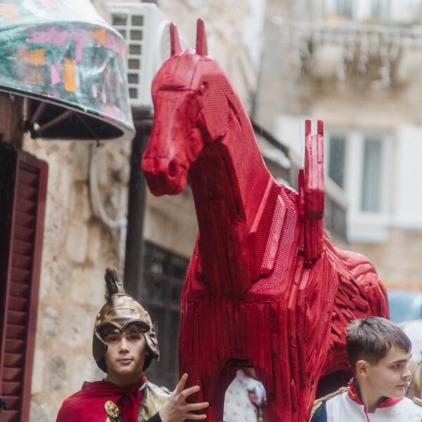 Iako su manifestaciju pratili nepovoljni vremenski uslovi i jaka kiša, program je u potpunosti realizovan prema planu. Karnevalska povorka sa karnevalom obišla je Stari grad, nakon čega je oko 13.30 časova započelo suđenje karnevalu u crkvi Santa Maria in Punta.