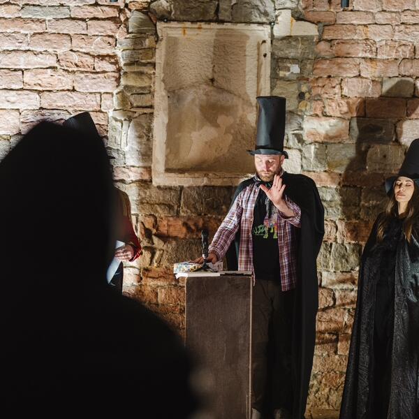 “Posebna dramaturška linija suđenja bila je uvođenje Duha grada (Genius loci), koji na scenu izlazi iscrpljen, sa koferima, spreman da napusti Budvu, uz poruku da su 'živi nemoćni da se odupru pošastima' i da je zato došlo vrijeme da'mrtvi sude živima'. Na taj način je, kako predviđa scenario, formirana fantazmagorična porota sastavljena od znamenitih istorijskih ličnosti i velikana povezanih sa Budvom i njenim razvojem: Kadmo i Harmonija, Rimljanin, Vizantinac, car Dušan, dužd Serenissime Republike Venecije, don Krsto Ivanović, Napoleon, konte Zanović, Franja Josif, don Antun Kojović, regent Aleksandar, Ita Rina, Milo Milunović, Tomo Luketić i njegova supruga Stana, Tito i Draža”, navode organizatori.