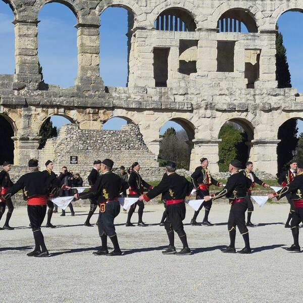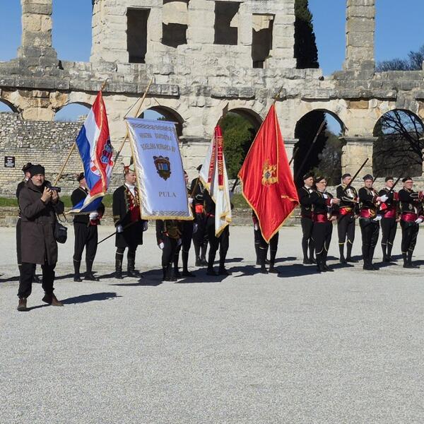 "Zajednički odred, sastavljen od 57 mornara, dočasnika i časnika, postrojen kod fontane uz pratnju Gradske glazbe Pula, svečano je prodefilovao ulicama Pule koja su tim povodom bila zatvorena za saobraćaj. Defile, ispraćen velikim brojem građana i posjetilaca, nastavljen je prema pulskoj Areni, jednom od najprepoznatljivijih simbola grada i cijelog regiona", saopštio je predsjednik Bokeljske mornarice Kotor Denis Vukašinović.