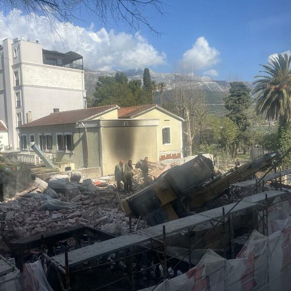 Orunula dvospratna građevina, poznata kao Žuta kuća, tik uz hotel "Mogren" naspram Staroga grada porušena je danas i na njenom mjestu predviđena je gradnja višespratnog hotela sa pet zvjezdica.