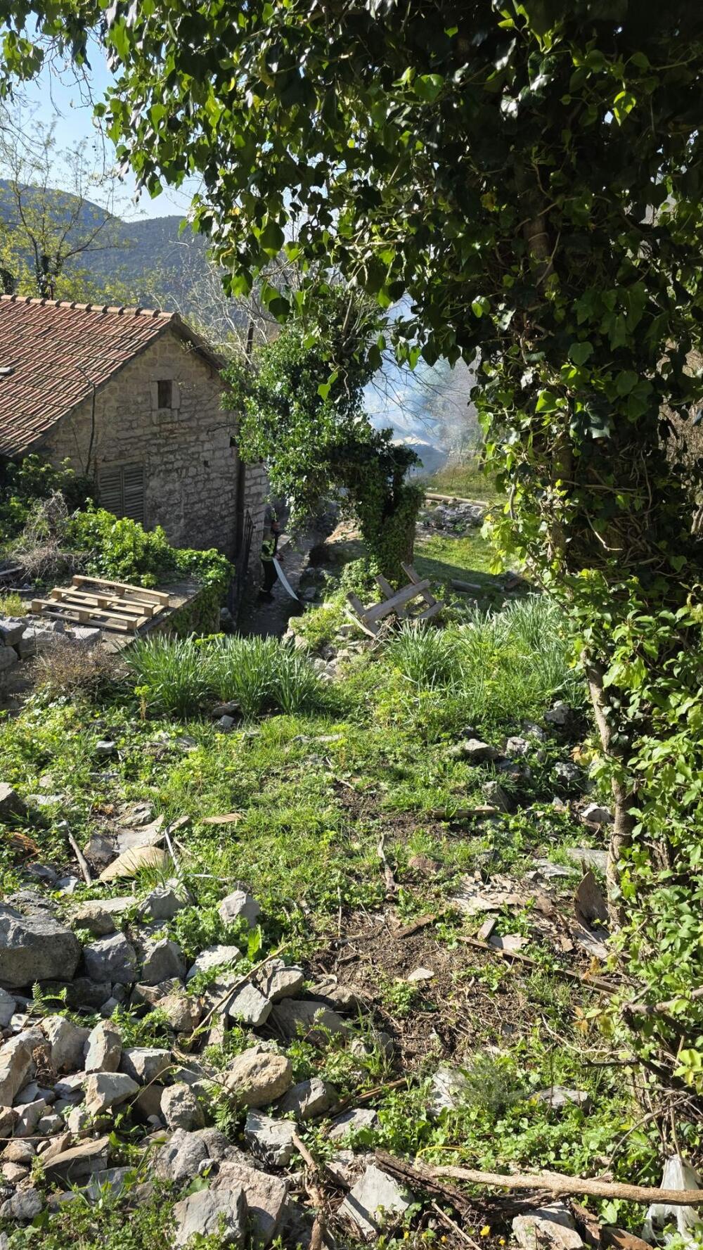 Uprkos brzoj intervenciji pripadnika Službe zaštite i spašavanja Opštine Tivat, vatra je u potpunosti uništila taj pomočni objekat - nekada staru tradicionalnu gornjolastovsku kamenu kuću.