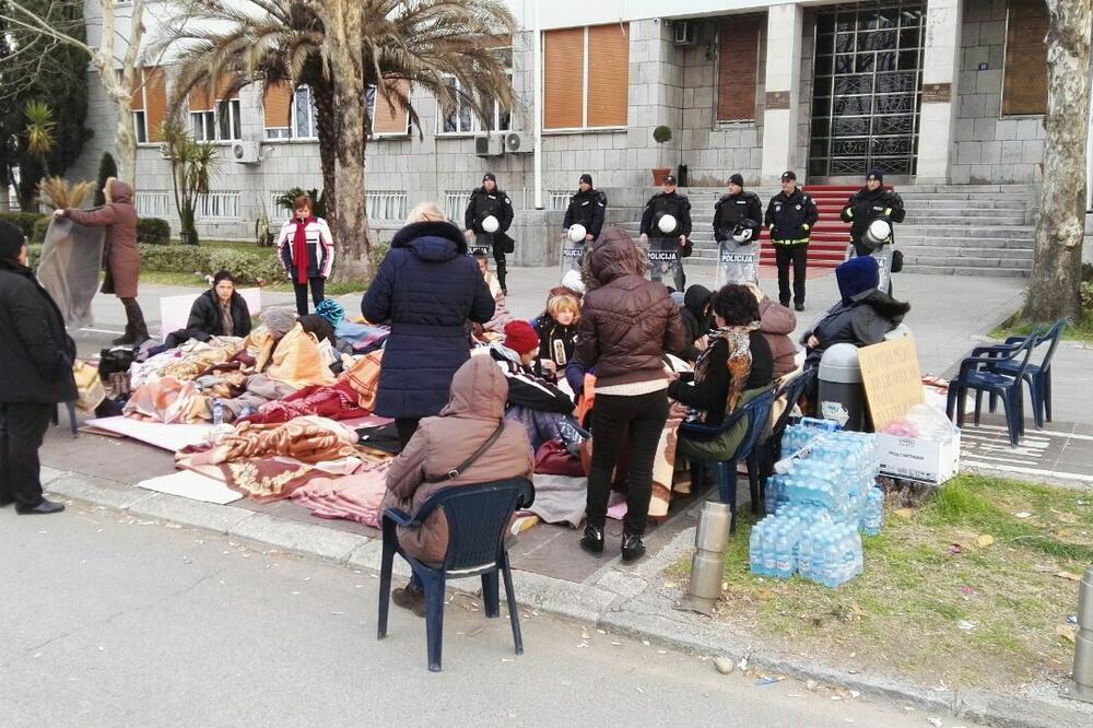 Majke sa troje i više djece od juče štrajkuju glađu, a nekoliko desetina njih provelo je noć na pločniku ispred Skupštine i na improvizovanoj bini postavljenoj u parku preko puta.
