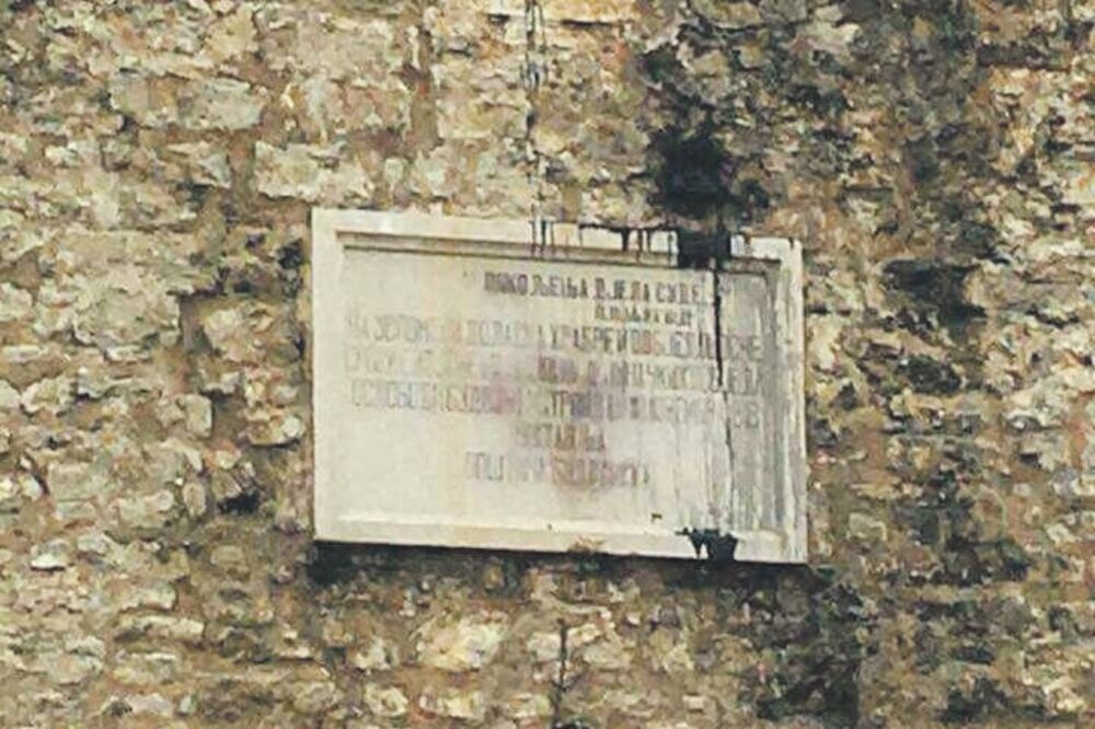 Ploča je i prije nekoliko godina poprskana crnom farbom, koju je vremenom kiša isprala.