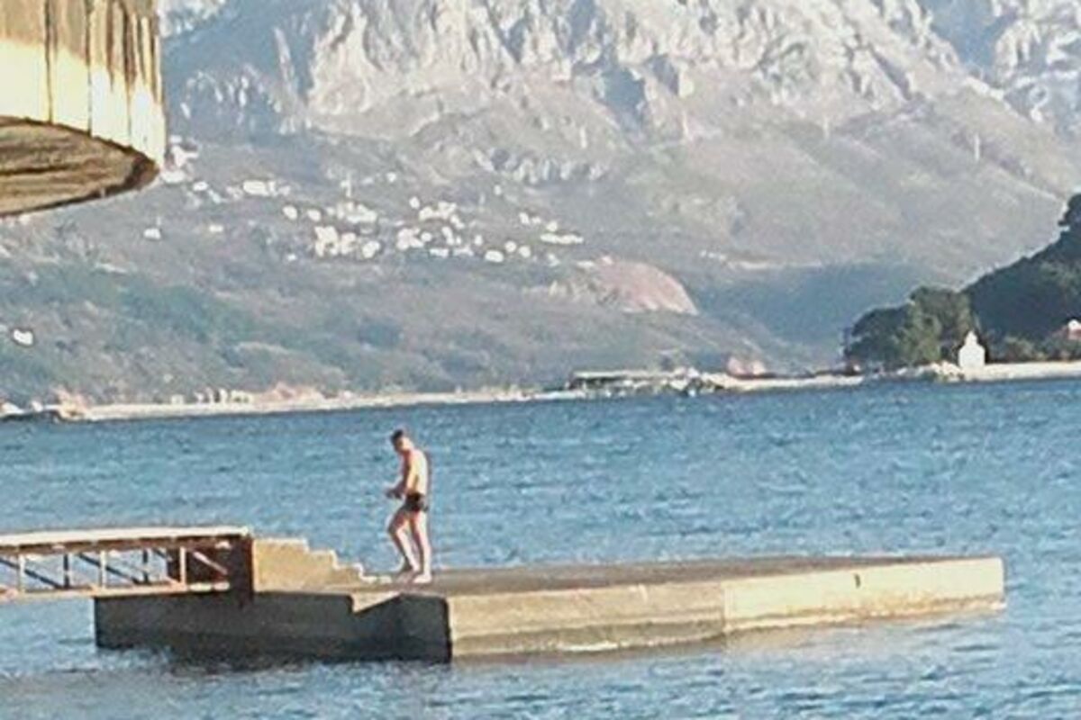 Čitaoci "Vijesti" zabilježili su juče na budvanskoj plaži Ričardova glava muškarca koji je, kako navode, u vodi proveo oko pola sata.
