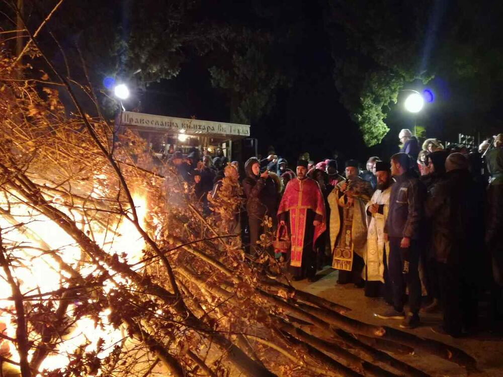 Ispred crkve Svete Tekle vjernici mitropolije crnogorsko-primorske naložili su badnjake.