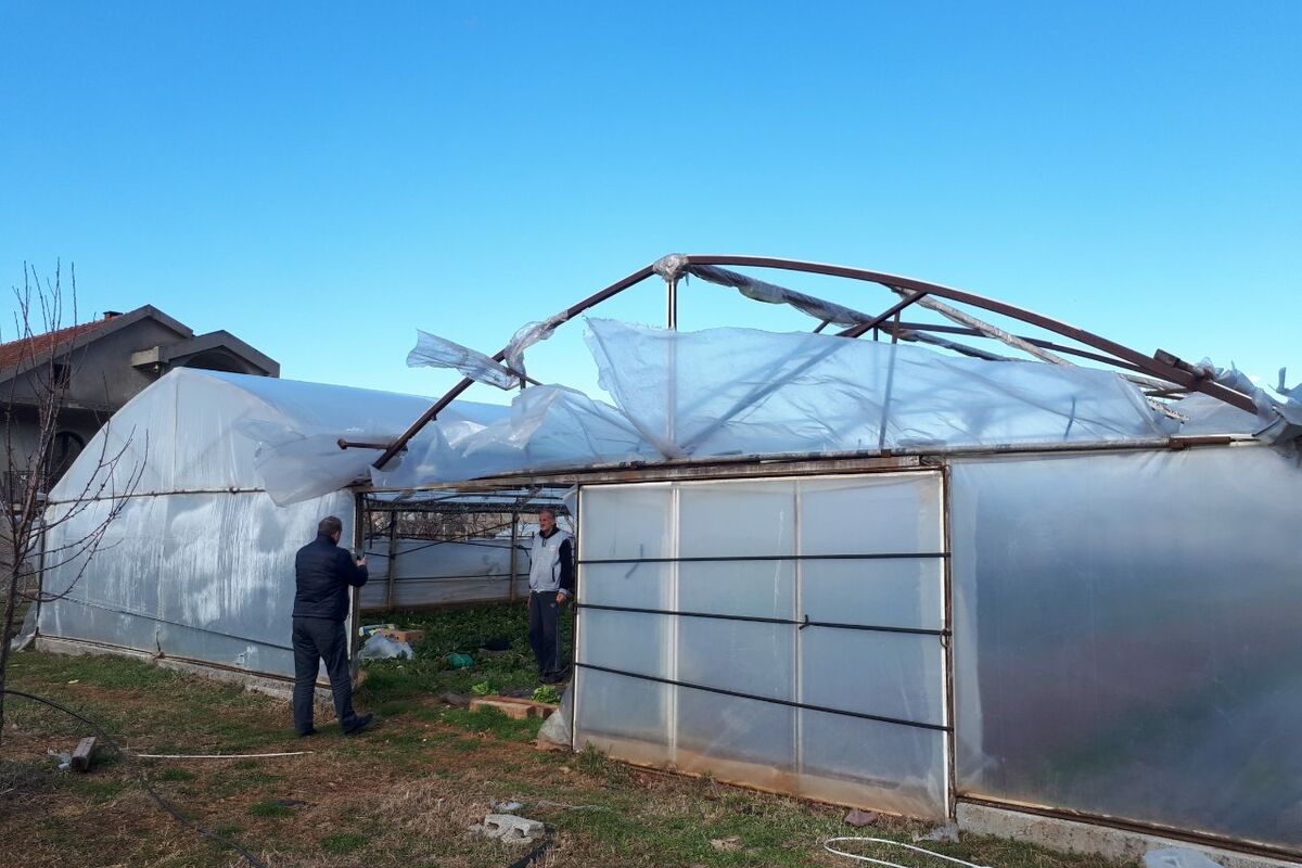 "Prema informacijama sa terena, iako su poljopriverdni proizvođači reagovali preventivno, shodno preporukama Ministarstva poljoprivrede i ruralnog razvoja datim u susret najavljenom nevremenu, usljed udara vjetra koji je dostizao brzinu od oko 100km/h, na dijelu plastenika došlo je do oštećenja, uglavnom zbog cijepanja folije. Konstrukcije su ostale neoštećene, a obim pričinjene štete na plastenicima gdje je stradala folija, na sreću, nije veliki, s obzirom da u najvećem broju plastenika još nije zasnovana proizvodnja. Na objektima za držanje stoke u centralnom i južnom dijelu evidentirane su štete na krovovima i pokrivačima silaže", navodi se u saopštenju Ministarstva poljoprivrede i ruralnog razvoja.