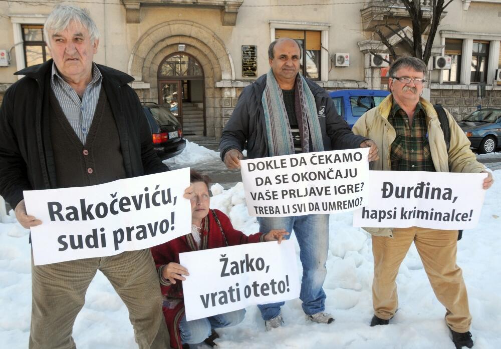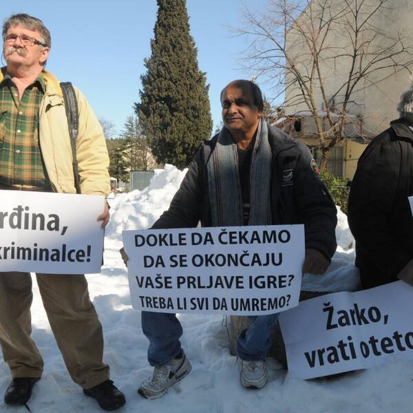 "Ponovo smo nakon pola godine na istom mjesto. Mislim da je red da se ovaj slučaj okonča. Od bivših radnika do sada nekoliko umrlo, pa se pitam da li oni očekuju da svi umremo pa da ovaj slučaj riješe. Svi nadležni organi u Crnoj Gori upoznati su sa ovim predmetom, a nama je jedino preostalo da o tome još obavijestimo institucije iz Evropske unije, nebi li nam pomogli da se ovo konačno riješi", rekao “Vijestima” bivši radnik Djona Janković, koji je sa kolegama držao u rukama trasparente sa porukama upućenim specijalnom tužiocu za organizovani criminal Đurđini Ivanović i predsjedniku Privrednog suda Draganu Rakočeviću.
