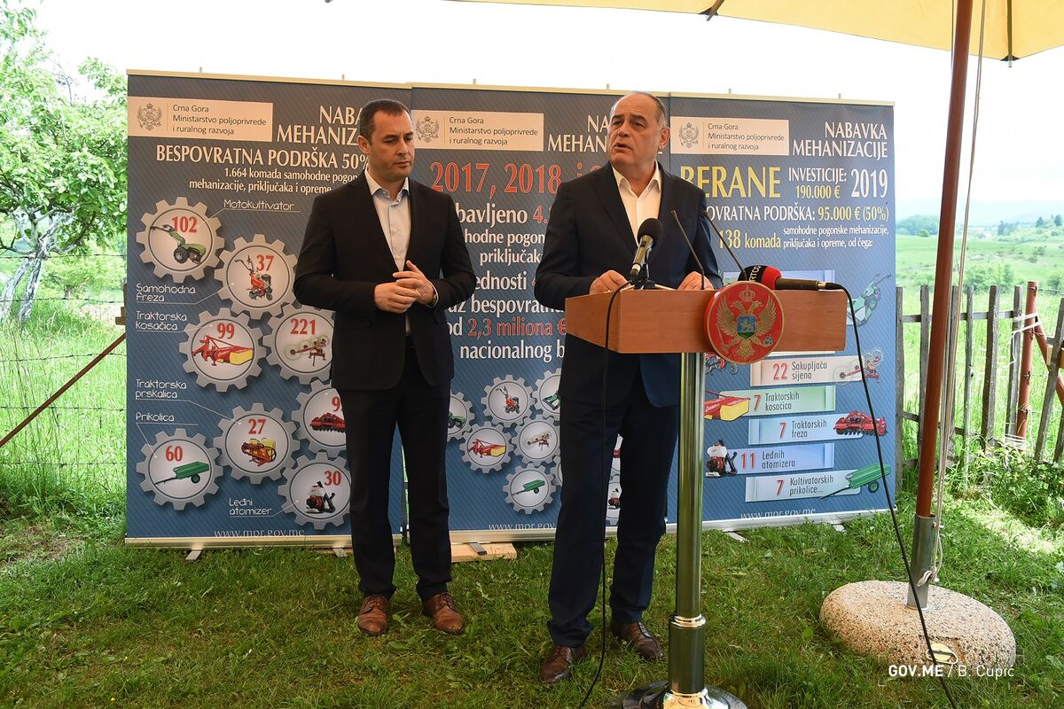 On je saopštio da je 80 poljoprivrednih proizvođača sa područja Opštine Berane dobilo bespovratnu podršku od 94 hiljade eura za nabavku mehanizacije i opreme vrijedne 190 hiljade eura.
