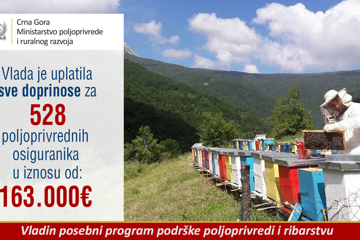 "U cilju ublažavanja posljedica epidemije COVID 19, Vlada je na sjednici od 24. aprila 2020. godine donijela odluku da se, kroz Posebni program podrške poljoprivredi i ribarstvu, uplate svi doprinosi za 528 poljoprivrednih osiguranika koji redovno uplaćuju doprinose, u ukupnom iznosu od 163.099,20 eura", saopšteno je iz Ministarstva.