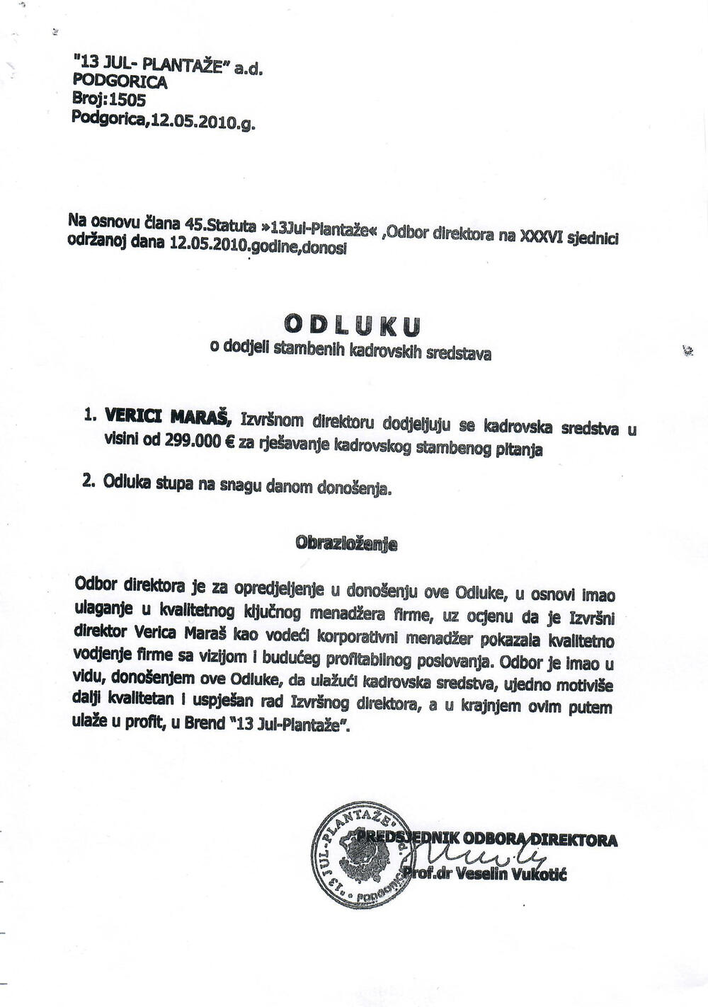 Predsjedniku borda direktora Veselinu Vukotiću ukupno je isplaćeno 79.500 eura, a u periodu od 2016. do 2019. godine isplaćivan je isti iznos za putovanja od po 8.500 eura.