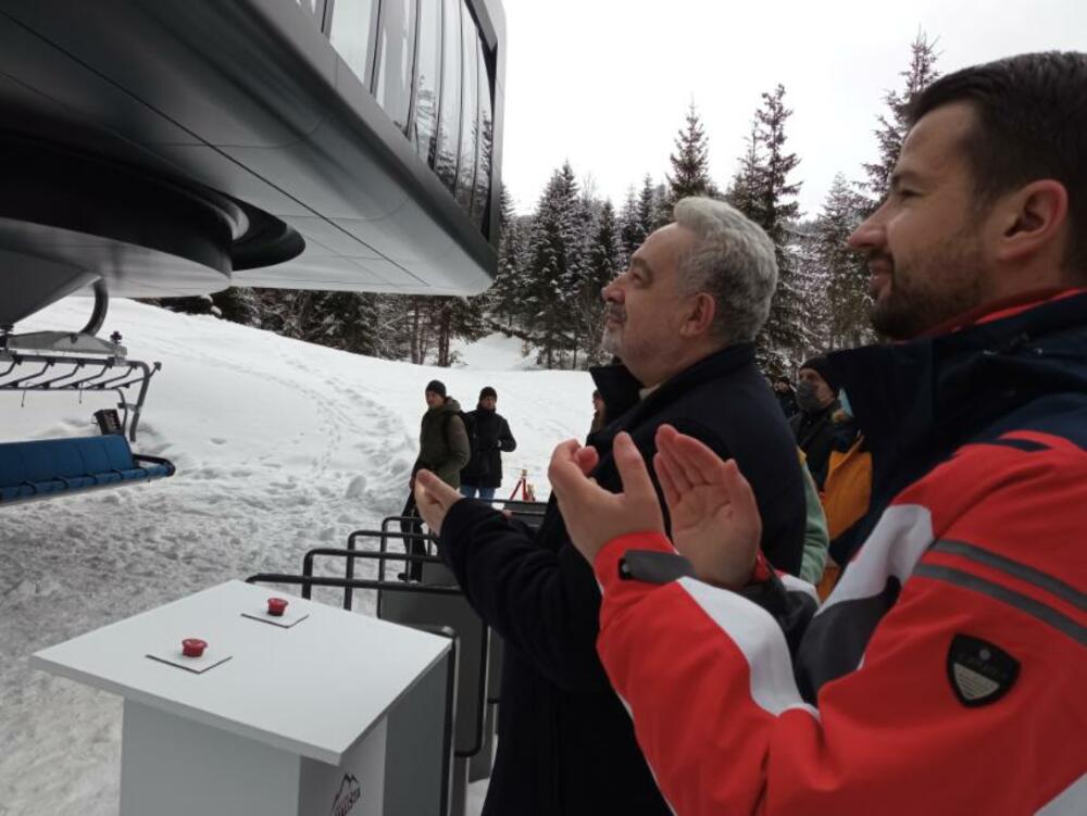 Premijer Zdravko Krivokapić i direktor Skijališta Crne Gore Đuro Milošević otvorili su žičaru K7, koja povezuje infrastrukturu državnog Ski centar Kolašin 1600 i privatnog Kolašin 1450.