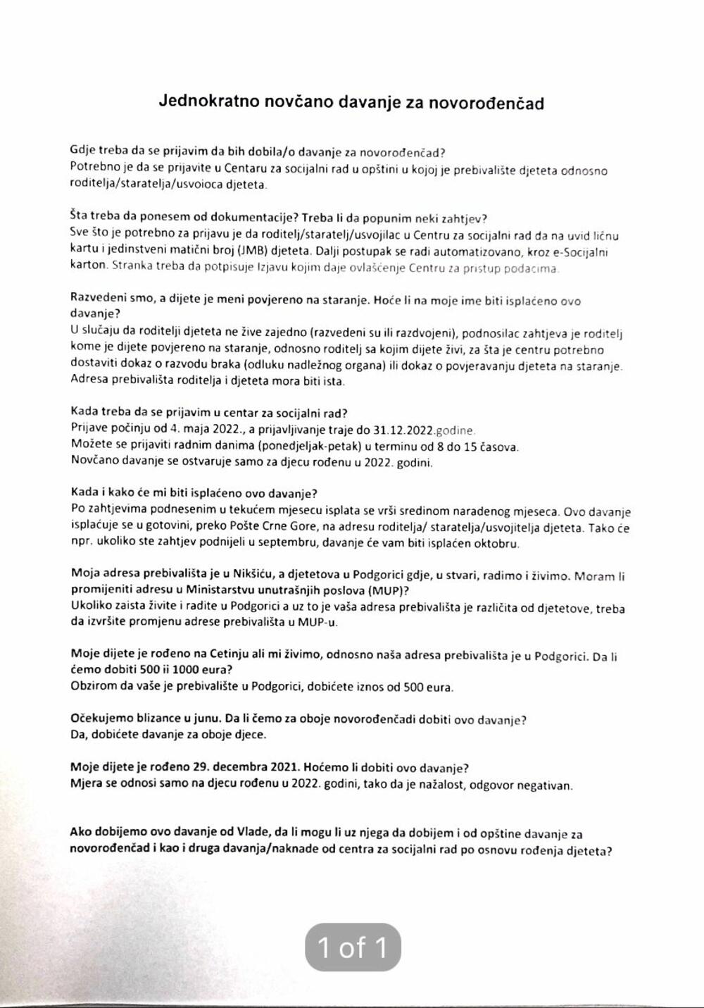 "Uputstvo je pripremljeno od strane radne grupe još krajem aprila, a kao rezultat zaključka prethodne Vlade. Međutim, od tada do danas se ništa nije uradilo, iako se morao sprovesti zaključak prethodne Vlade. Postavlja se pitanje za sadašnju Vladu zašto implementacija nije počela 4. maja kako je bilo predviđeno preko centara za socijalni rad", naveo je Milatović u reagovanju.